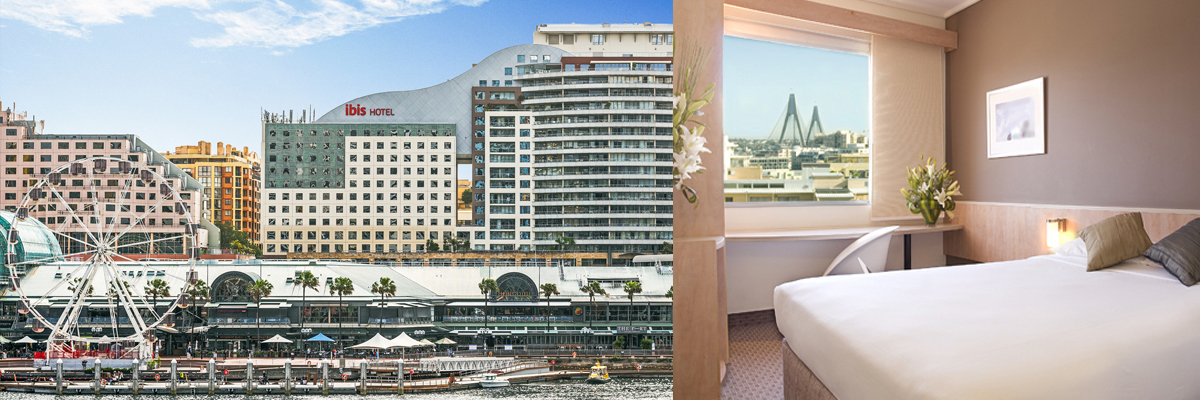 Centrally located in the heart of Darling Harbour, ibis Sydney Darling Harbour is one of Sydney's most popular 3.5-star hotels. A 5-minute walk to the International Convention Centre and surrounded by an array of tourist attractions, restaurants and bars, ibis is renowned for its quality, simplicity and value for money with many rooms boasting spectacular views of Darling Harbour. With a popular bar, restaurant and 24-hour reception, ibis has affordable rates and friendly service and is perfect for business or leisure travel during a Sydney visit.